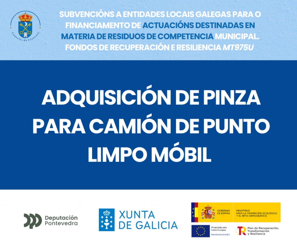 O Concello de Crecente incorporou unha nova pinza para o servizo de Punto Limpo Móbil, unha ferramenta esencial para a manipulación e recollida segura de residuos voluminosos, mellorando a eficiencia e a capacidade operativa deste servizo público.